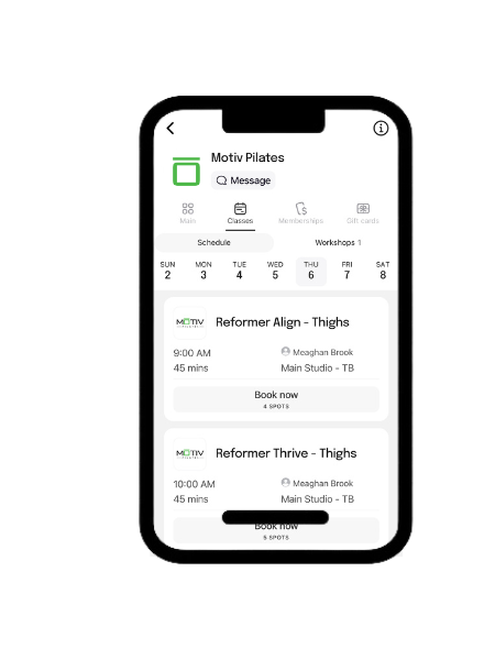 Make scheduling your classes easy. Download the MOTIV apps to your smartphone and book your class anywhere. Pick your spot, add reminders, book for a friend. Get studio promotions right on your phone.